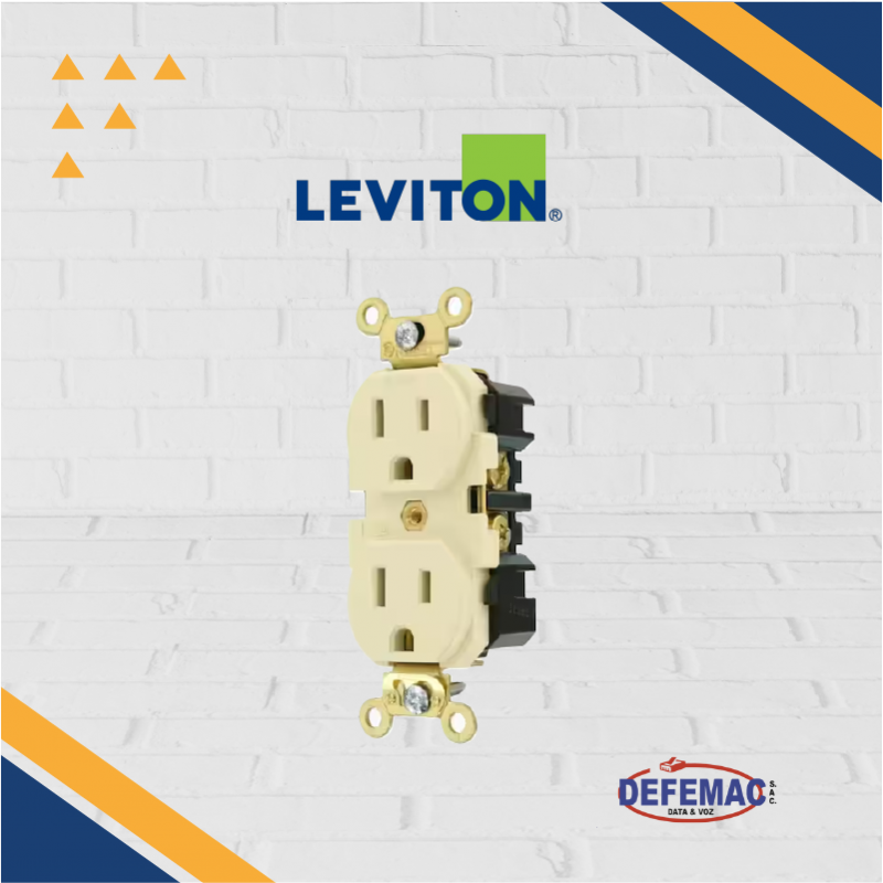 Tomacorriente dúplex, grado industrial extra resistente, superficie lisa, 15 A, 125 V, cableado posterior o lateral, NEMA 5-15R, 2 polos, 3 cables, conexión a tierra automática - Marfil