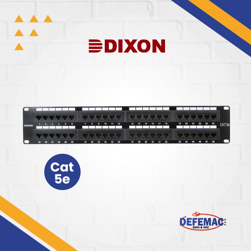 El Patch Panel DIXON P48T-K11-CEC/BK es un panel UTP de categoría 5e cargado, diseñado para centros de datos. Su configuración en 180° permite una instalación eficiente, con terminaciones posteriores e identificación por colores.