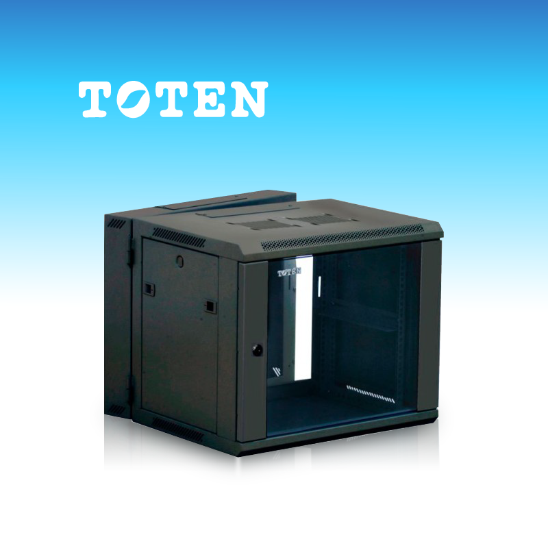 Para instalación estándar de 19″, puerta frontal de vidrio templado, apertura de puerta de entrada con ángulo de 180°, paneles laterales desmontables, puerta posterior pivotable con ángulo de giro de 90°, porcentaje de ventilación 72%.