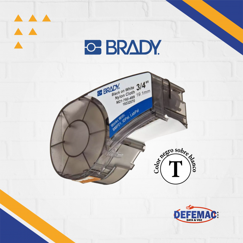 Cartucho BRADY Vinyl Blanco 3/4" diseñado para etiquetado industrial y profesional. Ofrece etiquetas duraderas y resistentes, ideales para entornos exigentes y aplicaciones en exteriores.