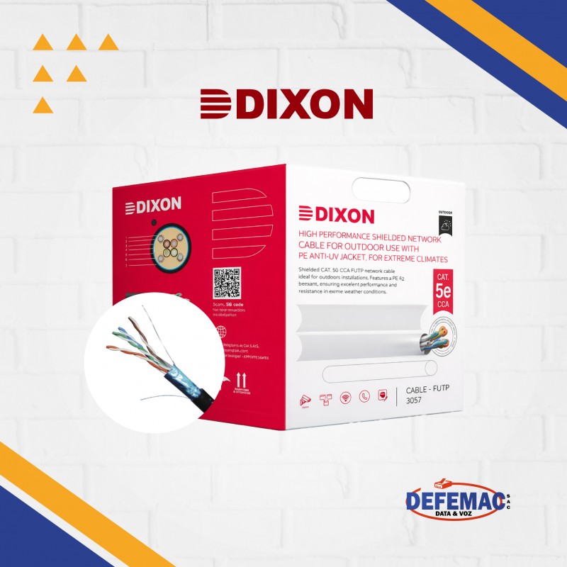 El cable F/UTP (Unshielded Twisted Pair and Foil – Par trenzado no apantallado y lámina de aluminio), Nom-Plenum de conductores CCA (Aluminio Bañado en Cobre) Categoría 5E, calibre 24 AWG, cuenta con cubierta de Polietileno (PE) para los conductores, ripcord de nylon, cable de descarga, Polietileno (PE) flexible con impresión de longitud en intervalos de un metro.