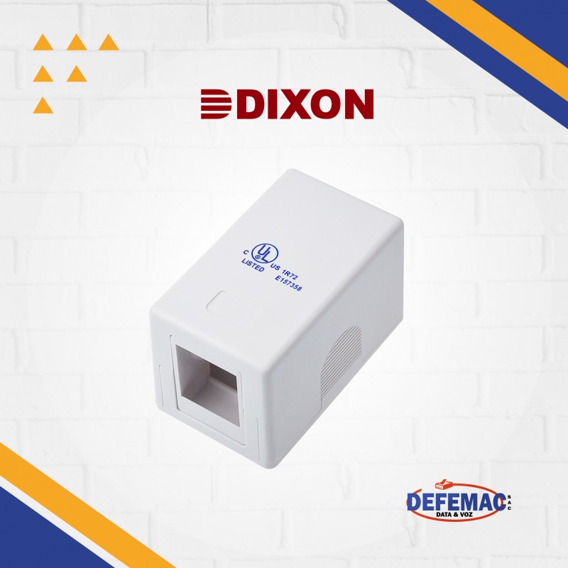 Roseta adosable de 1 puerto marca DIXON, diseñada para ofrecer una solución compacta y de fácil instalación. Ideal para ser montada en pared en entornos de oficina o proyectos de cableado estructurado. Incluye accesorios de montaje y acepta conectores RJ45 categoría 5E y categoría 6.