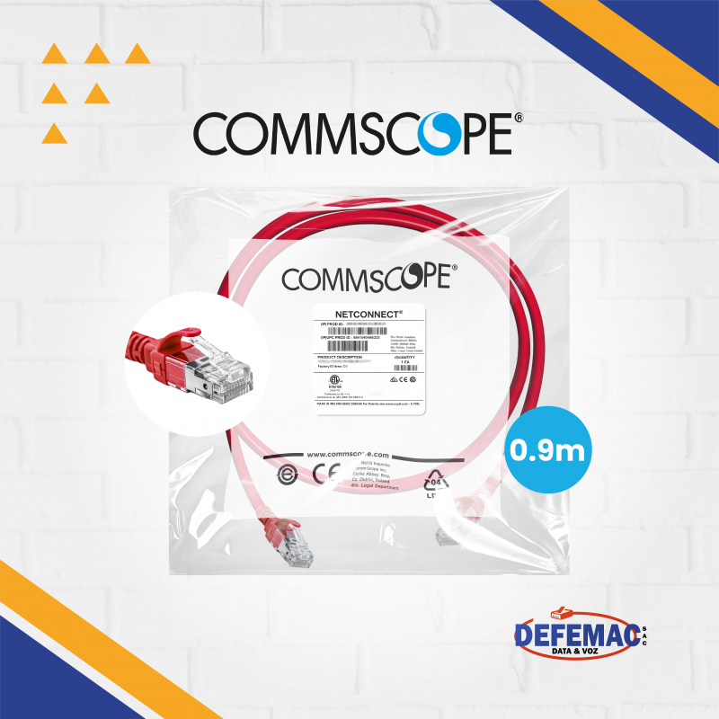 Confía en COMMSCOPE para soluciones compactas y eficientes. Este patch cord rojo garantiza transmisión estable en conexiones cortas.