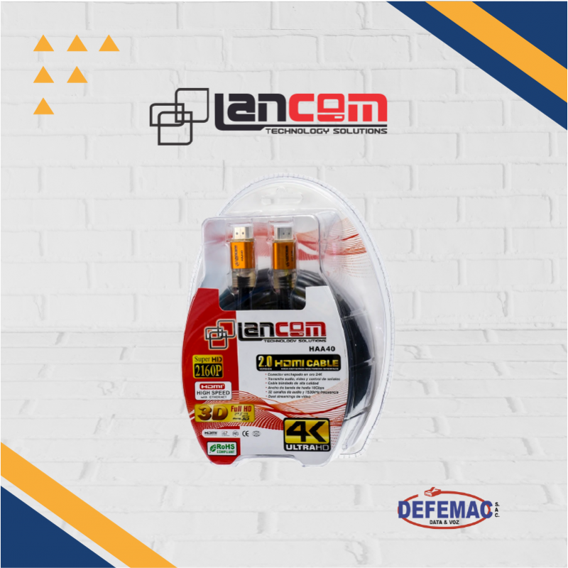 Cable HDMI 2.0 LANCOM ideal para transmitir audio, video y señales de control con alta fidelidad. Su conector enchapado en oro 24K y construcción blindada garantizan un rendimiento superior. Soporta resolución 4K Ultra HD y hasta 18Gbps de ancho de banda.