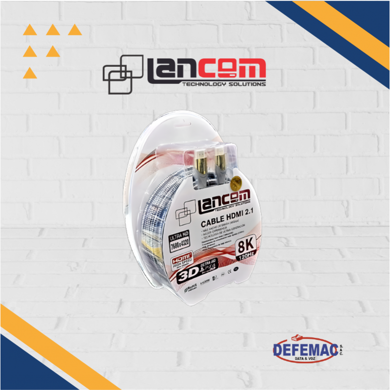 Disfruta de calidad y rendimiento superior con el cable HDMI LANCOM 2.1, ideal para la mejor experiencia audiovisual en resolución 8K y audio avanzado.