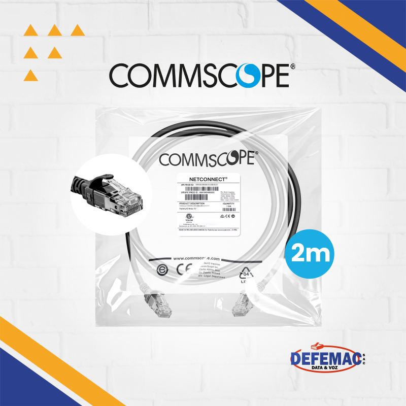 El Patch Cord COMMSCOPE Cat 6A S/FTP de 2 metros, color negro, ofrece una solución confiable para instalaciones de red que exigen rendimiento y mínima interferencia en ambientes de alta densidad tecnológica.