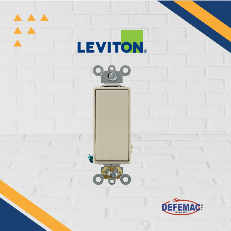 Interruptor basculante unipolar silencioso de CA Decora Plus de 20 A, 120/277 V, grado comercial, con conexión a tierra automática, cableado posterior y lateral, color marfil