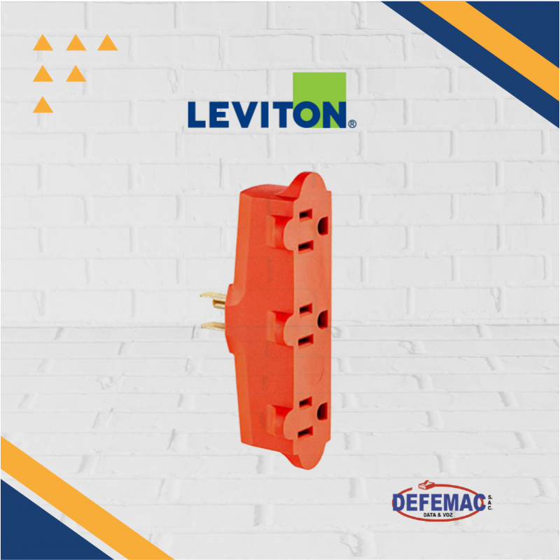 Adaptador individual a triple, de vinilo, para interiores, de 15 A, 125 V, 2 polos, 3 cables, con conexión a tierra, se aceptan 3 enchufes rectos o angulares - Naranja
